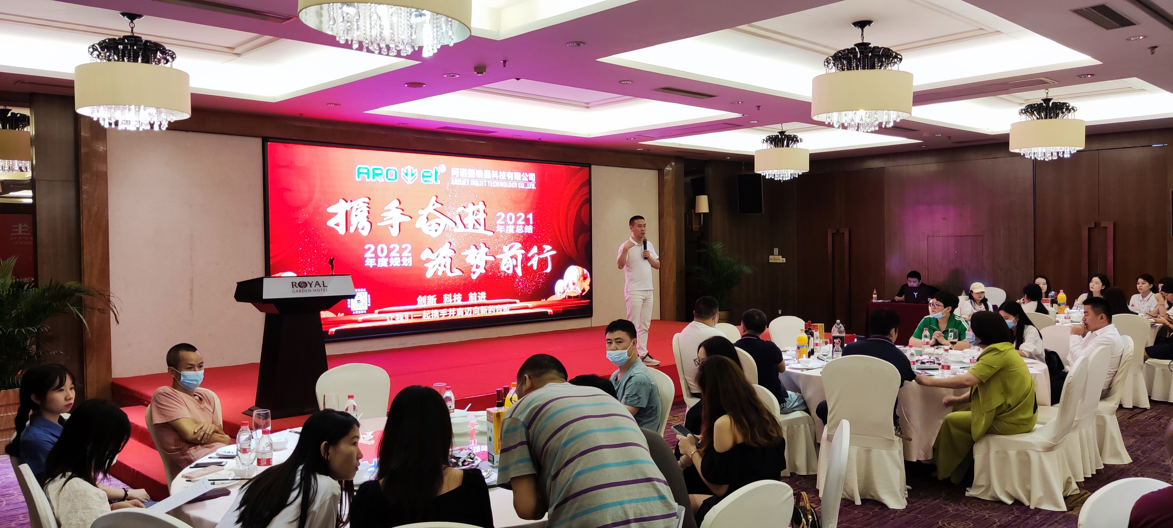 歲月不居,時節如流,為展現公司日新月異、蓬勃發展的良好風貌,增進公司全體成員們彼此之間的友誼,增強團隊凝聚力,廣東阿諾捷噴墨科技有限公司開展了一場2021年度總結暨表彰大會,在做好疫情防疫措施的情況下,在大朗帝豪酒店舉行。
